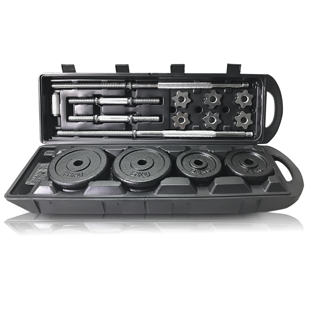 ดัมเบล บาร์เบล เซ็ต 50 กิโลกรัม เหล็กสีดำ พร้อมกล่องมีล้อ