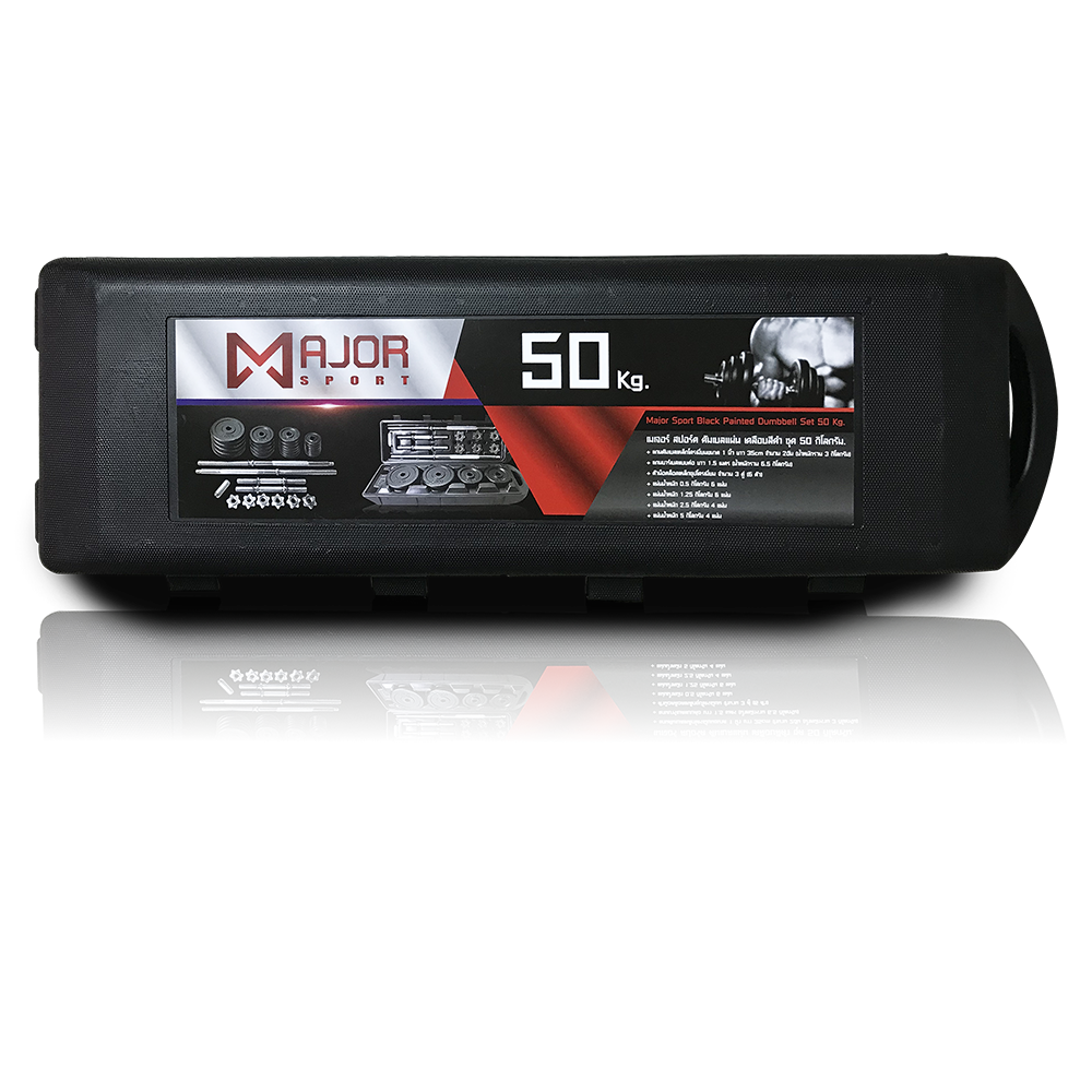 Major Sport Black Painted Dumbbell Set 50 Kg. เป็นชุดดัมเบลยกน้ำหนัก 50 กิโลกรัม ปรับน้ำหนักได้ เหมาะสำหรับทุกท่านที่ต้องการเสริมสร้างกล้ามเนื้อ ช่วยกระชับต้นแขน ลดหุ่น ลดไขมัน สร้างกล้ามเนื้อ เสริมความแข็งแรงของร่างกาย ผลิตจากวัสดุคุณภาพดี เคลือบสีดำเพื่อสวยงามและความทนทานเป็นพิเศษ ด้ามจับชุบโครเมี่ยม เสริมร่องลายด้ามจับ เพื่อความกระชับเวลาใช้งาน คุณสามารถเปลี่ยนแปลงรูปร่างของคุณได้ ด้วยตัวของคุณเองง