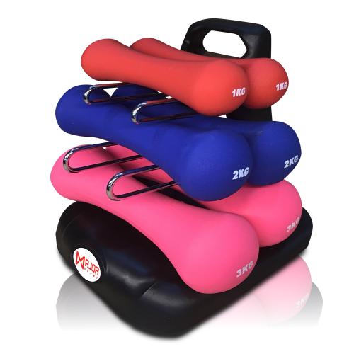 ชุด3 ดัมเบลชุบนีโอนพรีน 12kg. + L Rack