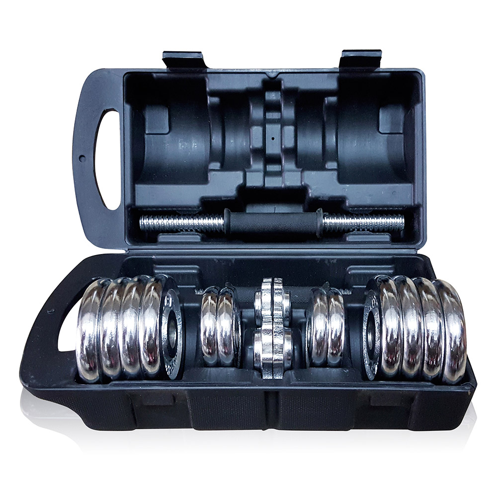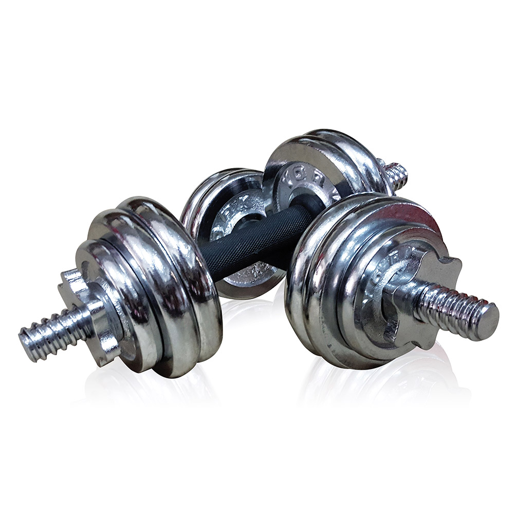 Chromed Dumbbell Set 15 Kg. + Median Segment 30cm