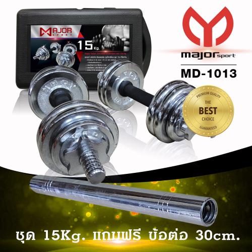 Major Sport Chromed Dumbbell Set 15 Kg. ดัมเบล 15 กิโลกรัม ชุบโครเมี่ยม และแถมข้อต่อเพื่อเป็นบาร์เบลขนาดยาว 30 ซม.