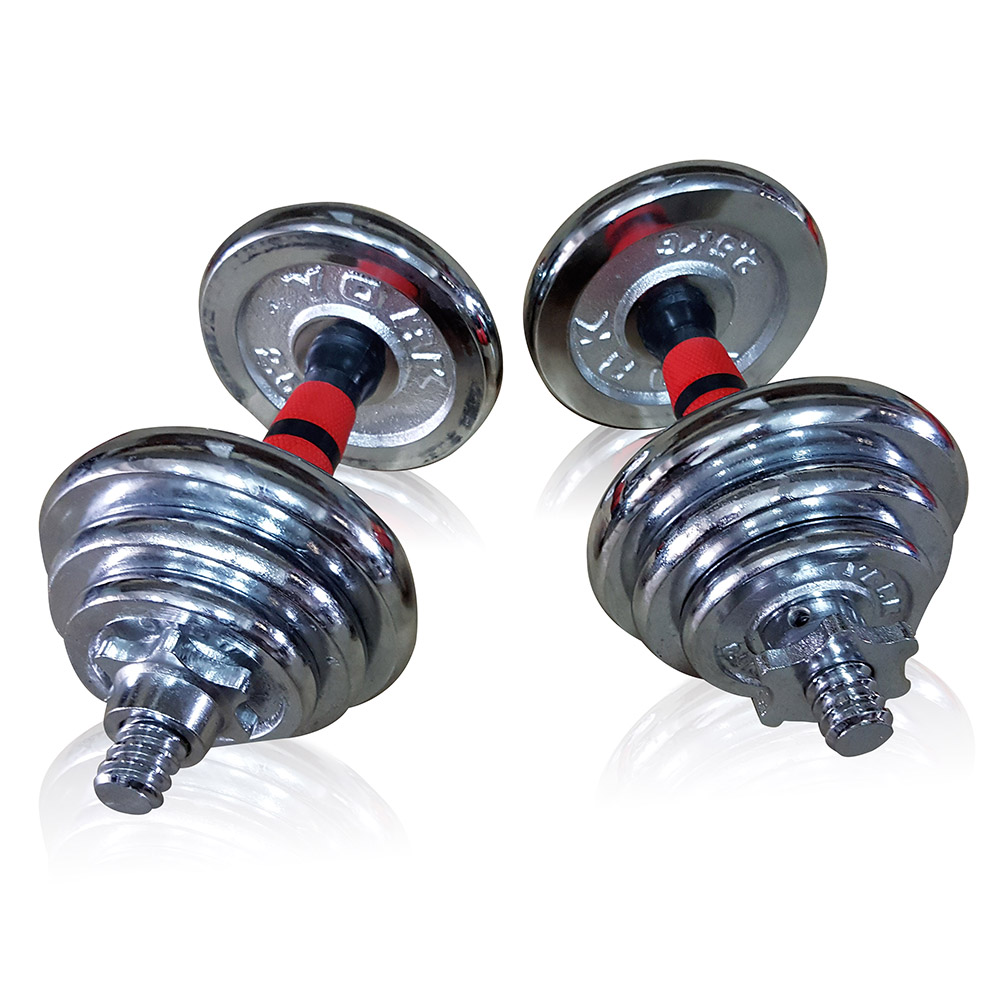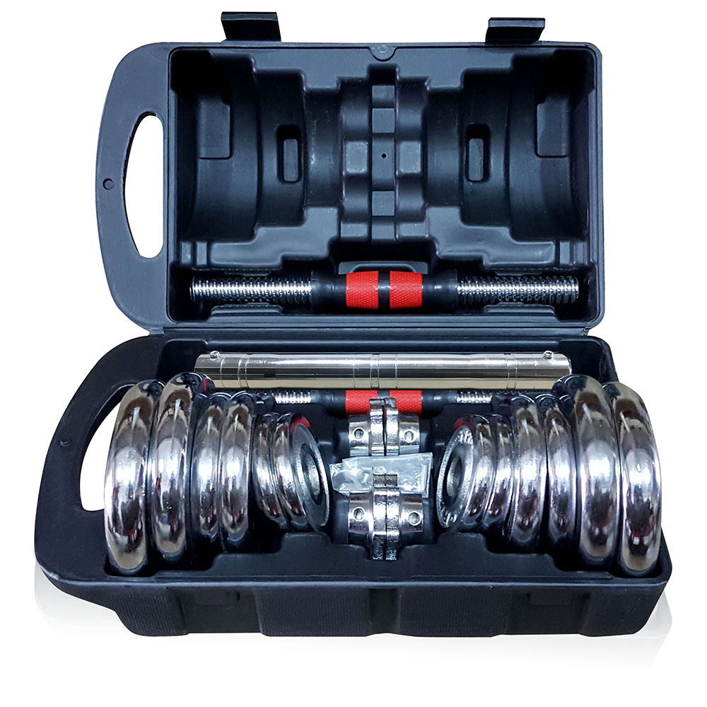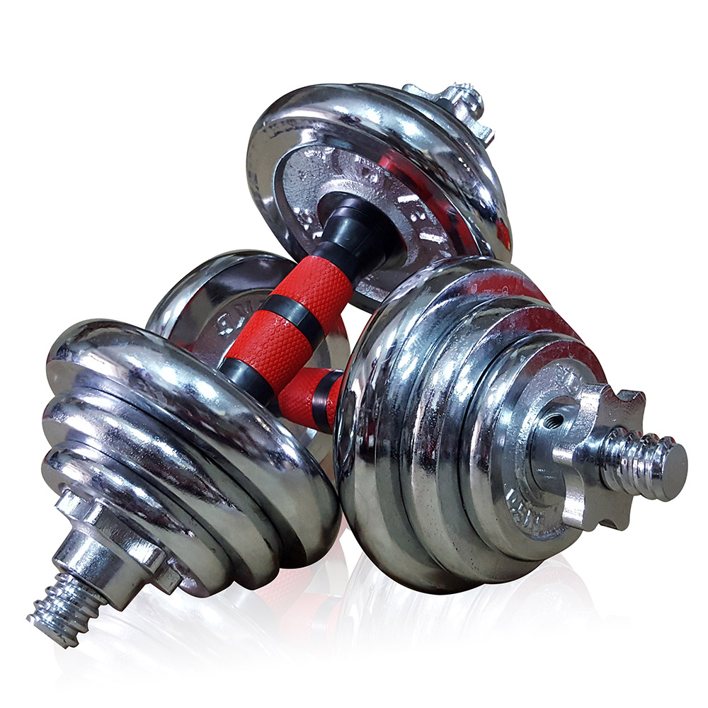 ดัมเบล ด้ามแดง 20 กิโลกรัม ชุบโครเมี่ยม และแถมข้อต่อยาว 30 ซม.