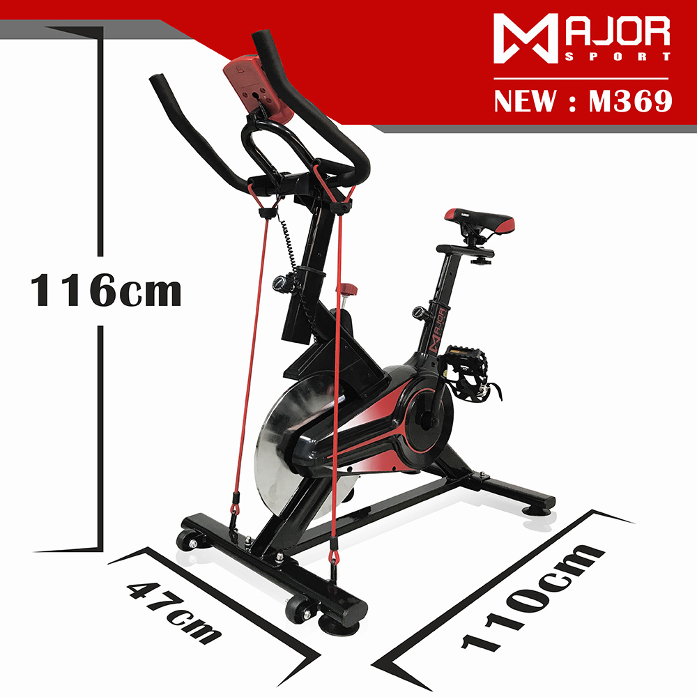 เครื่องออกกำลังกายประเภท SPINNER BIKE รุ่นM369 ที่มาพร้อมกับการออกแบบที่สวยหรู ครบทุกฟังก์ชั่นการใช้งานการใช้งาน ด้วยหน้าจอ LED แสดงการจับเวลา จับสปีด วัดระยะทาง วัดชีพจรการเต้นของหัวใจ และวัดระดับการเผาผลาญแคลลอรี่ จักรยานสปินเนอร์ไบรท์เป็น เครื่องออกกำลังกายที่มีขนาดกะทัดรัด ให้ความนุ่มนวลและต่อเนื่อง ด้วยการทำงานที่เป็นระบบจานเหล็ก น้ำหนัก 8กิโลกรัม (โดยประมาณ) ที่สามารถเพิ่มแรงต้านทานในขณะที่ปั่นจักรยาน และยังปรับเบาะตามความเหมาะสมของสรีระแต่ละคนได้ เหมาะสำหรับทุกเพศทุกวัย และผู้ที่ต้องการบริหารส่วน สะโพก ต้นขา น่องขา ข้อเท้า เพื่อให้กล้ามเนื้อส่วนล่างกระชับมากยิ่งขึ้น