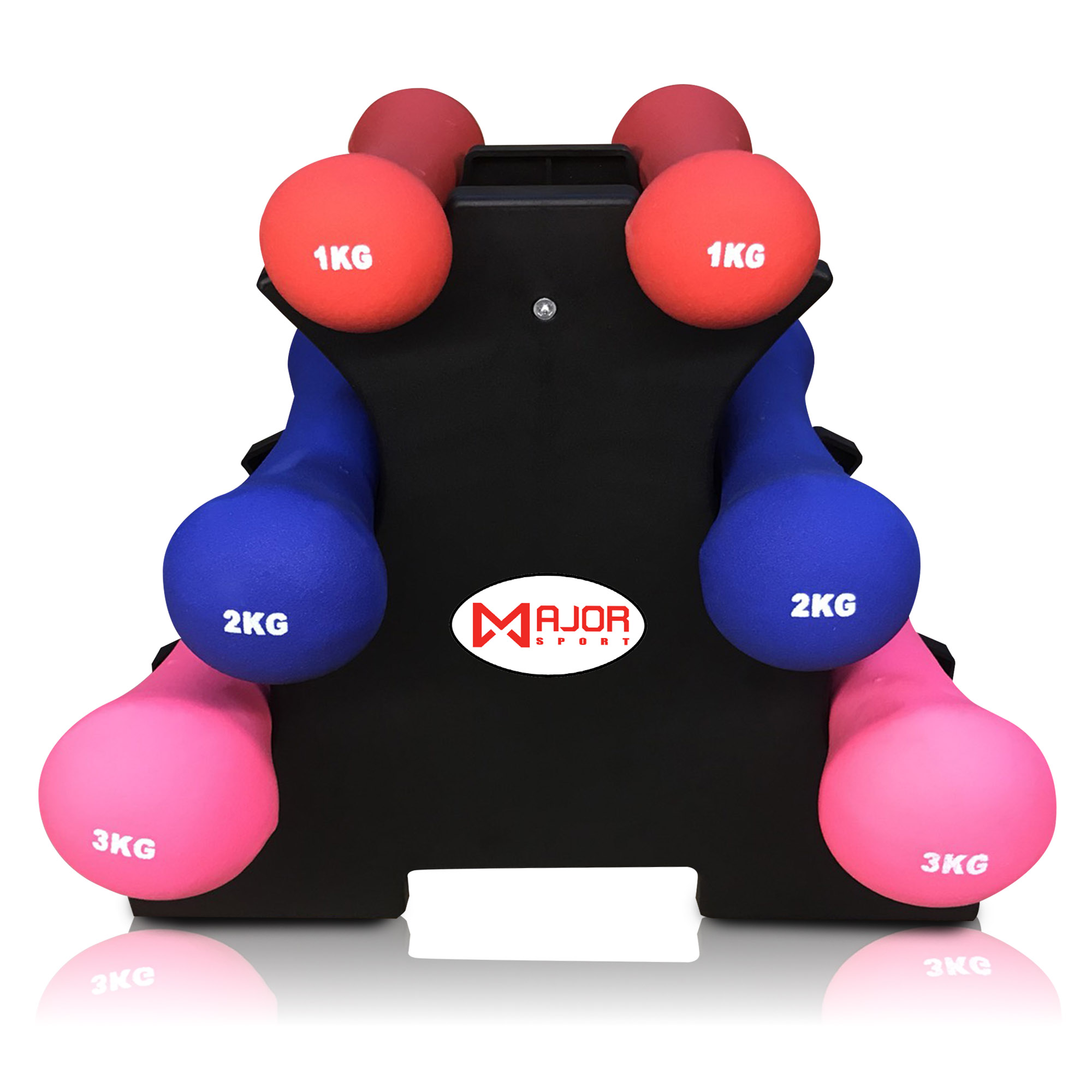 ชุด7 ดัมเบลชุบนีโอนพรีน 12kg. + A Rack