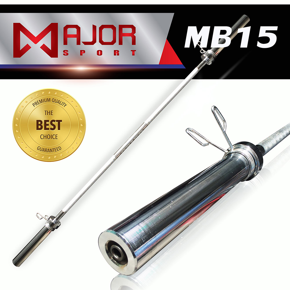 บาร์โอลิมปิค Olympic แบบตรง ขนาด 2 นิ้ว ยาว 220 ซม. + สปริงล๊อคแผ่นน้ำหนัก 2ตัว รุ่น MB-15