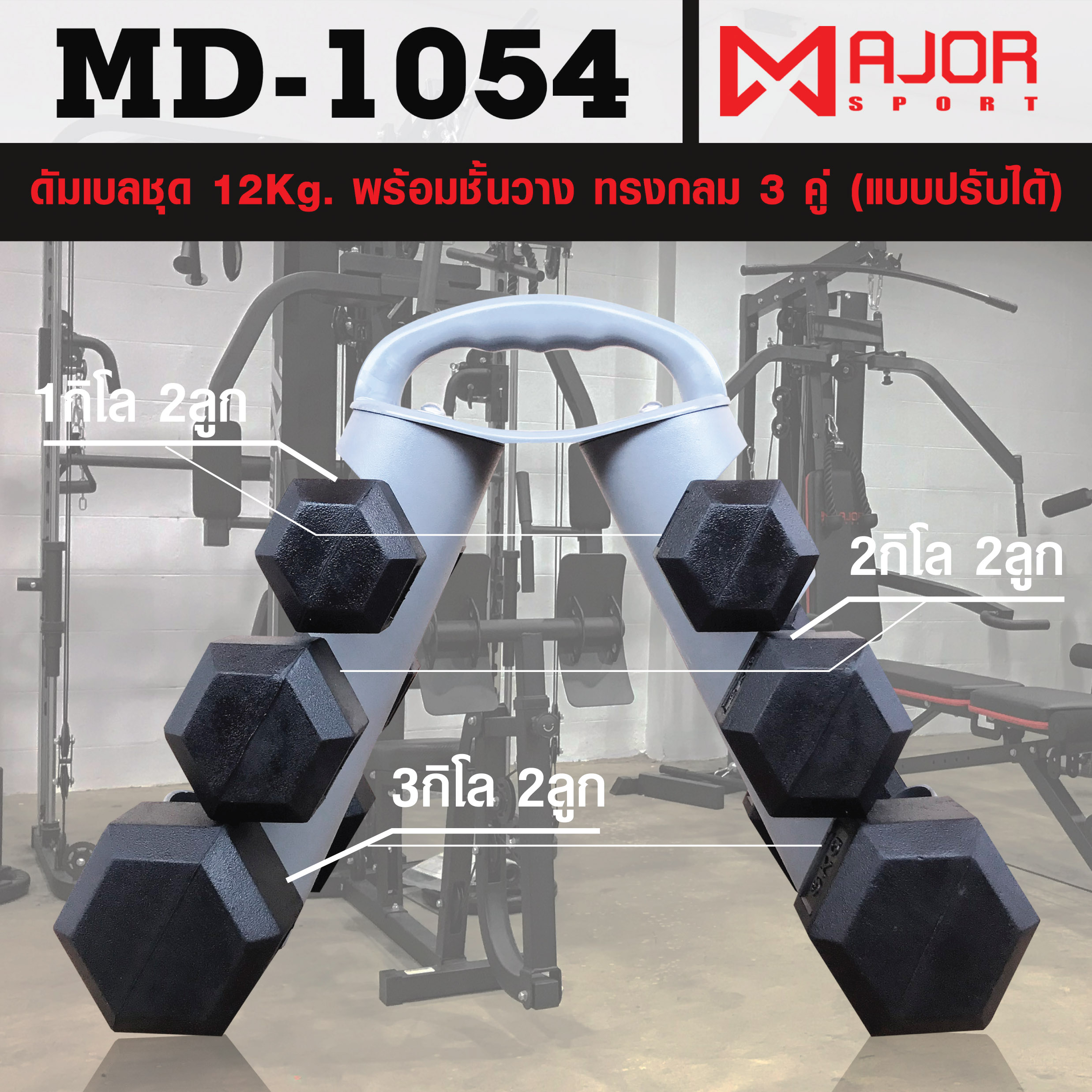 ดัมเบลหกเหลี่ยมหุ้มยาง ชุด 12Kg. พร้อมชั้นวาง ทรงกลม 3 คู่ (แบบปรับได้) รุ่น MD-1054