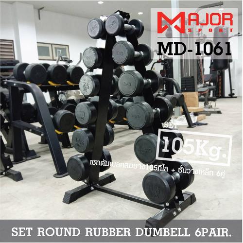 ดัมเบลกลมหุ้มยาง ชุด 105Kg. พร้อมชั้นวางดัมเบลเหล็ก 6คู่ ทรงA รุ่น MD-1061