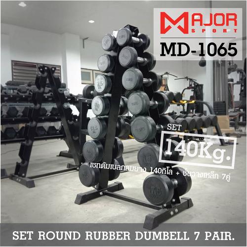 ดัมเบลกลมหุ้มยาง ชุด 140Kg. พร้อมชั้นวางดัมเบลเหล็ก 7คู่ ทรงA รุ่น MD-1065