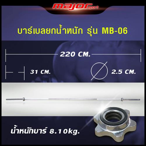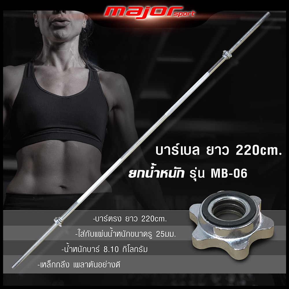 แกนบาร์เบล คานบาร์เบล บาร์เบล ขนาด 1 นิ้ว ยาว 220 cm. (ชุปโครเมี่ยม) + น็อตล็อคแผ่น รุ่น MB-06