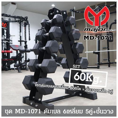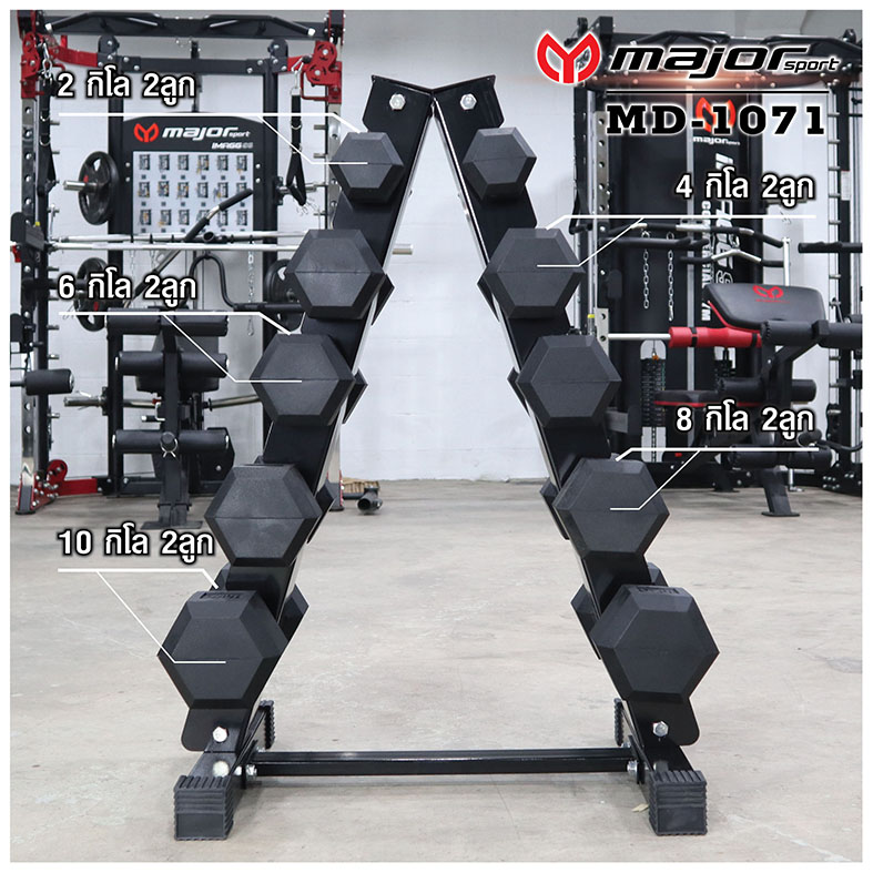 ชุดดัมเบลหกเหลี่ยม 60Kg. 5คู่ พร้อมชั้นวางดัมเบลเหล็ก 5คู่ ทรงA รุ่น MD-1071