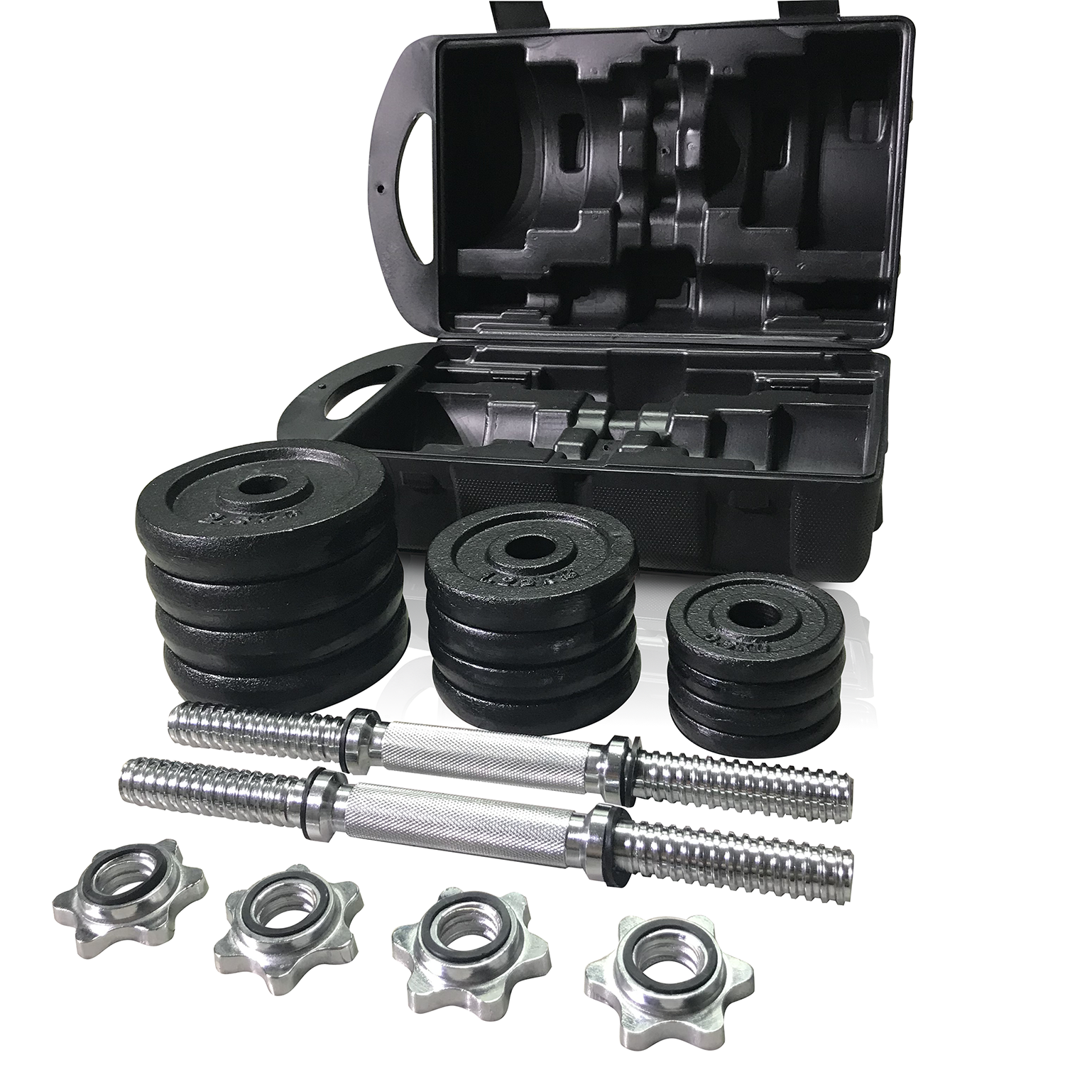 2. ประกอบด้วยแผ่นน้ำหนัก ดัมเบล ก้านดัมเบลที่สามารถต่อได้ และกล่อง ครบชุด