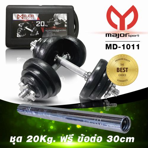 Major Sport Black Painted Dumbbell Set 20 Kg. ดัมเบล 20 กิโลกรัม เคลือบสีดำ และแถมข้อต่อเพื่อเป็นบาร์เบลขนาดยาว 30 ซม.