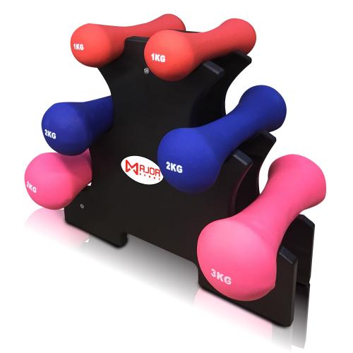 ชุด7 ดัมเบลชุบนีโอนพรีน 12kg. + A Rack