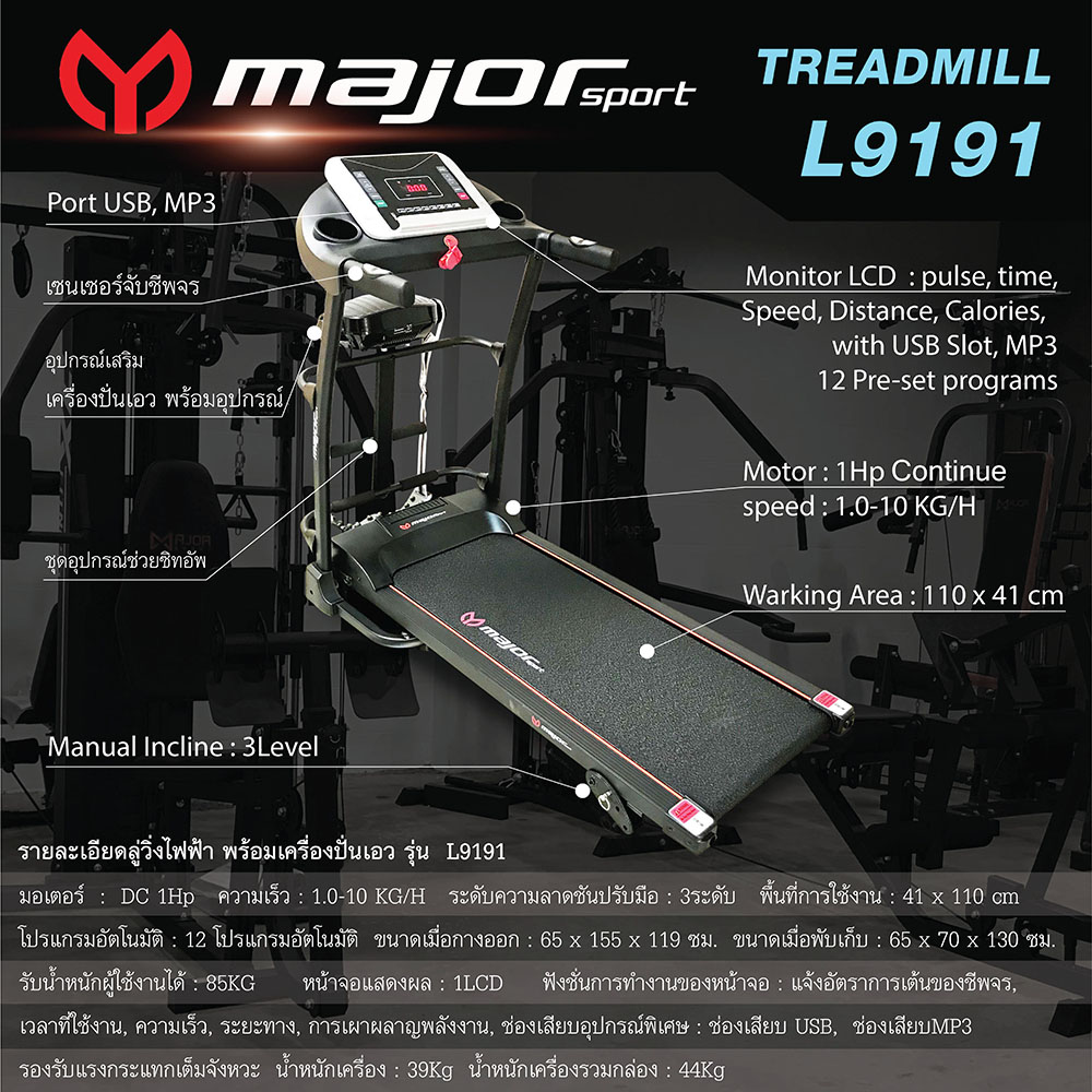รายละเอียดลู่วิ่งไฟฟ้า พร้อมเครื่องปั่นเอว รุ่น L9191