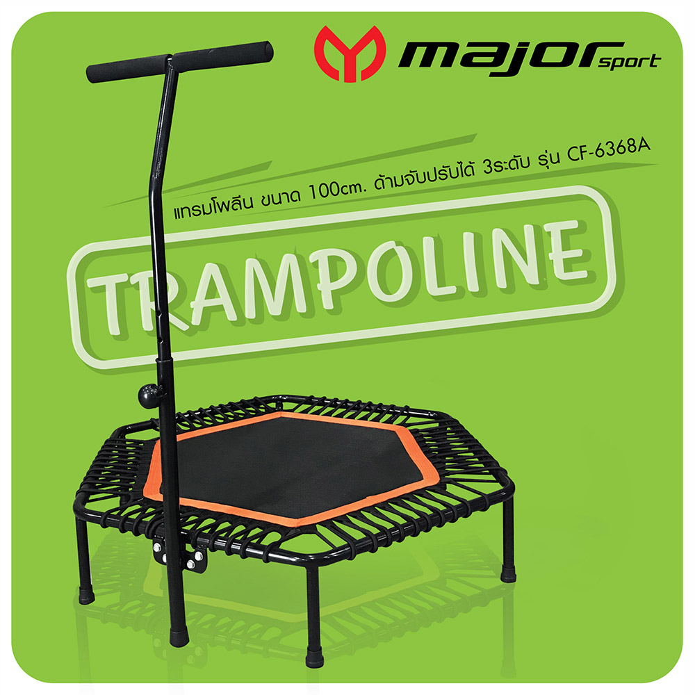 แทรมโพลีนขนาด100ซม. ทรง 6เหลี่ยมรุ่น CF-6368A พร้อมมือจับแบบปรับระดับ Trampoline 100cm.