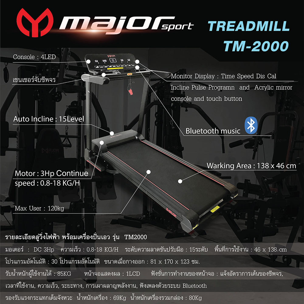 รายละเอียดลู่วิ่งไฟฟ้า รุ่น TM2000 (ระบบบลูทูชมิวสิก)