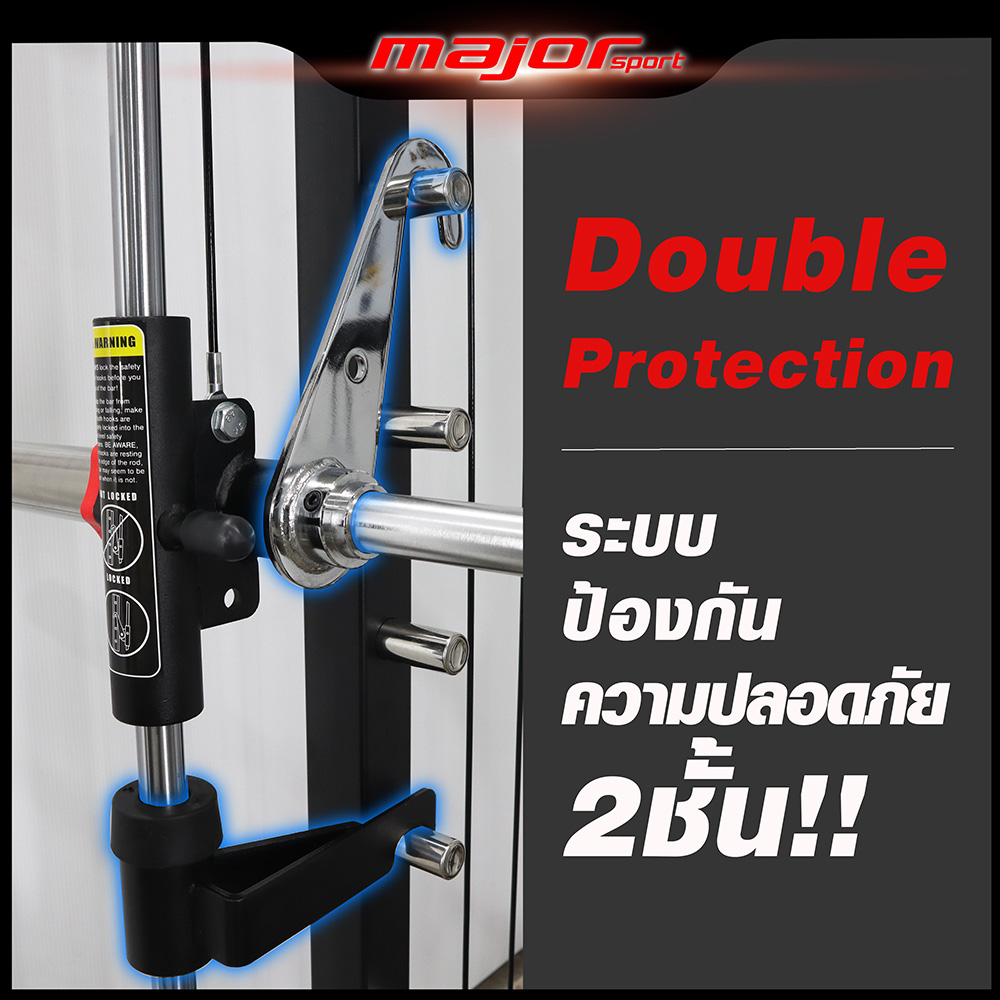 10.มีระบบเซฟตี้แบบตะขอสับป้องกันบาร์ หล่นลงมาทับตัวผู้ฝึก