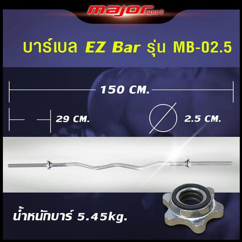 คานบาร์เบล แกนหยัก EZ Bar ขนาด 1 นิ้ว ยาว 150 cm.(ชุปโครเมี่ยม) + น็อตล็อคพร้อมซิลยาง 2 อัน รุ่น MB-02.5