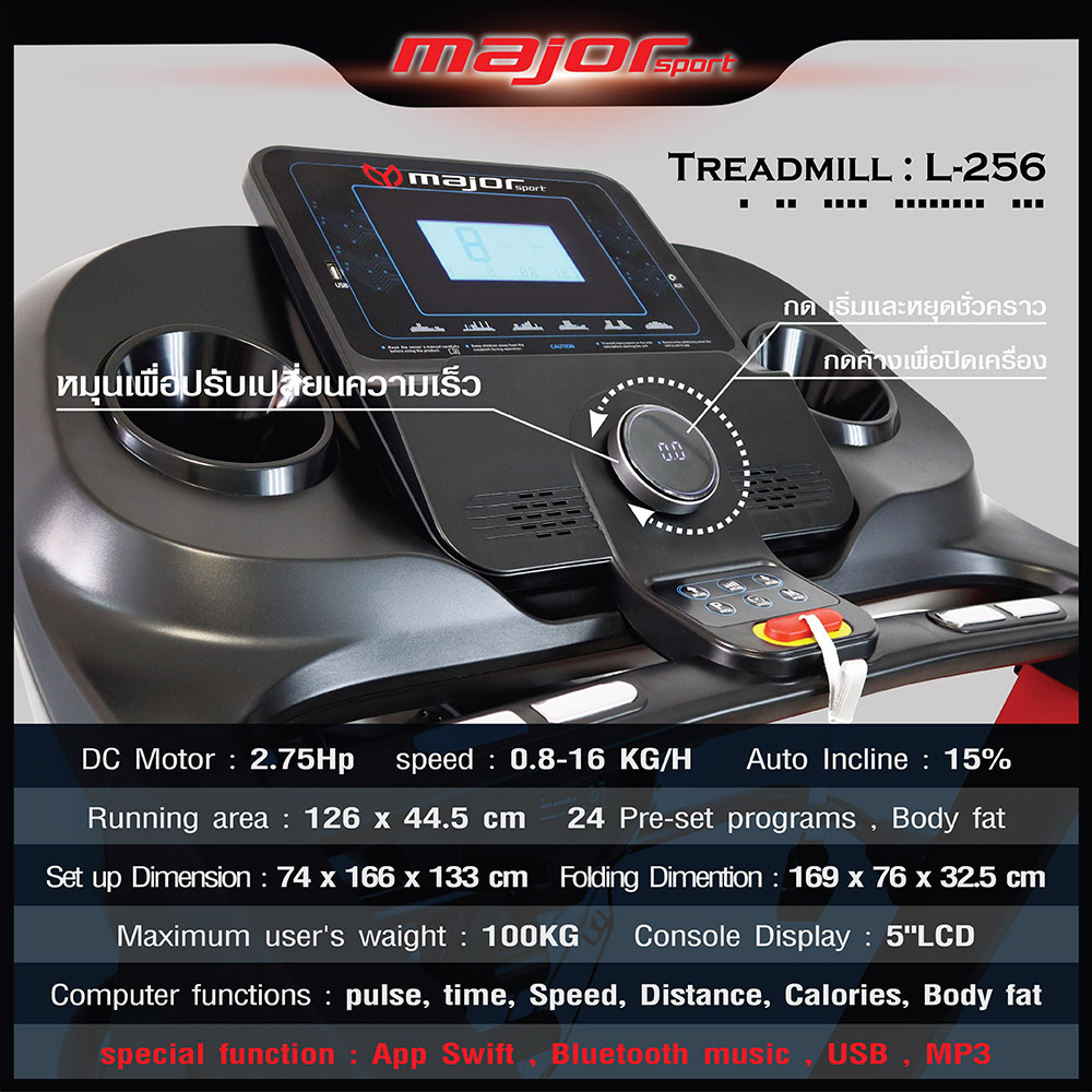 รายละเอียดลู่วิ่งไฟฟ้า พร้อมเครื่องปั่นเอว รุ่น L-256