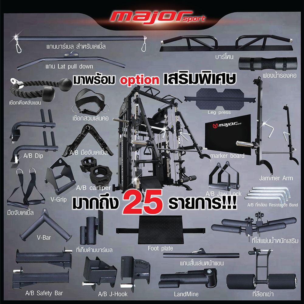 -Smith Machine แกนอลูมิเนียมอัลลอย ไม่ขึ้นสนิมตลอดอายุใช้งาน