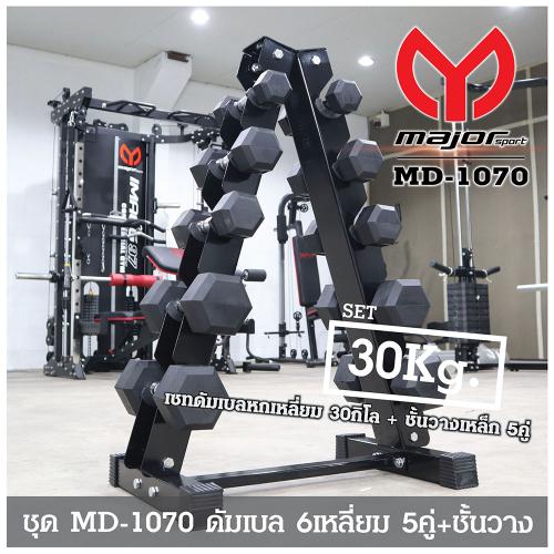 ชุดดัมเบลหกเหลี่ยม 30Kg. 5คู่ พร้อมชั้นวางดัมเบลเหล็ก 5คู่ ทรงA รุ่น MD-1070