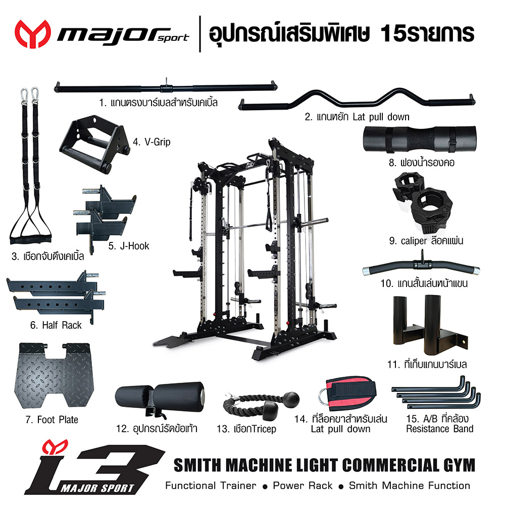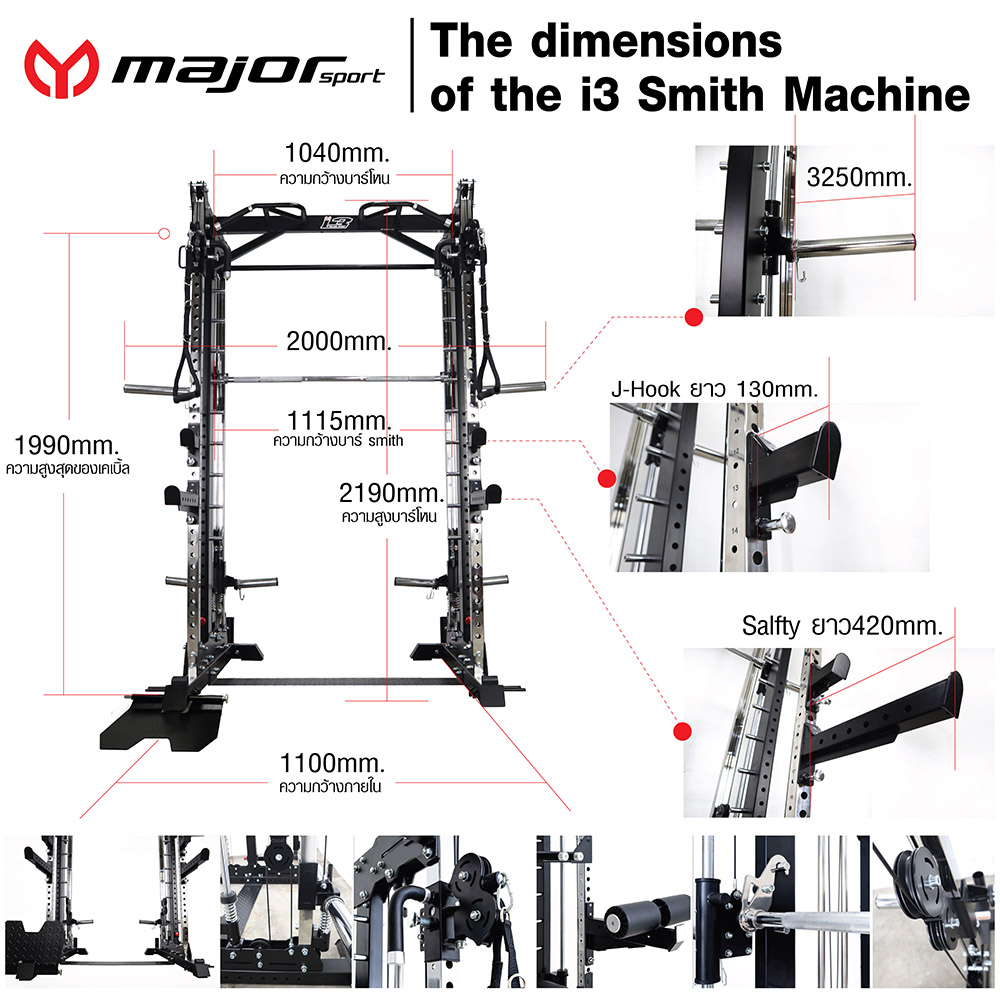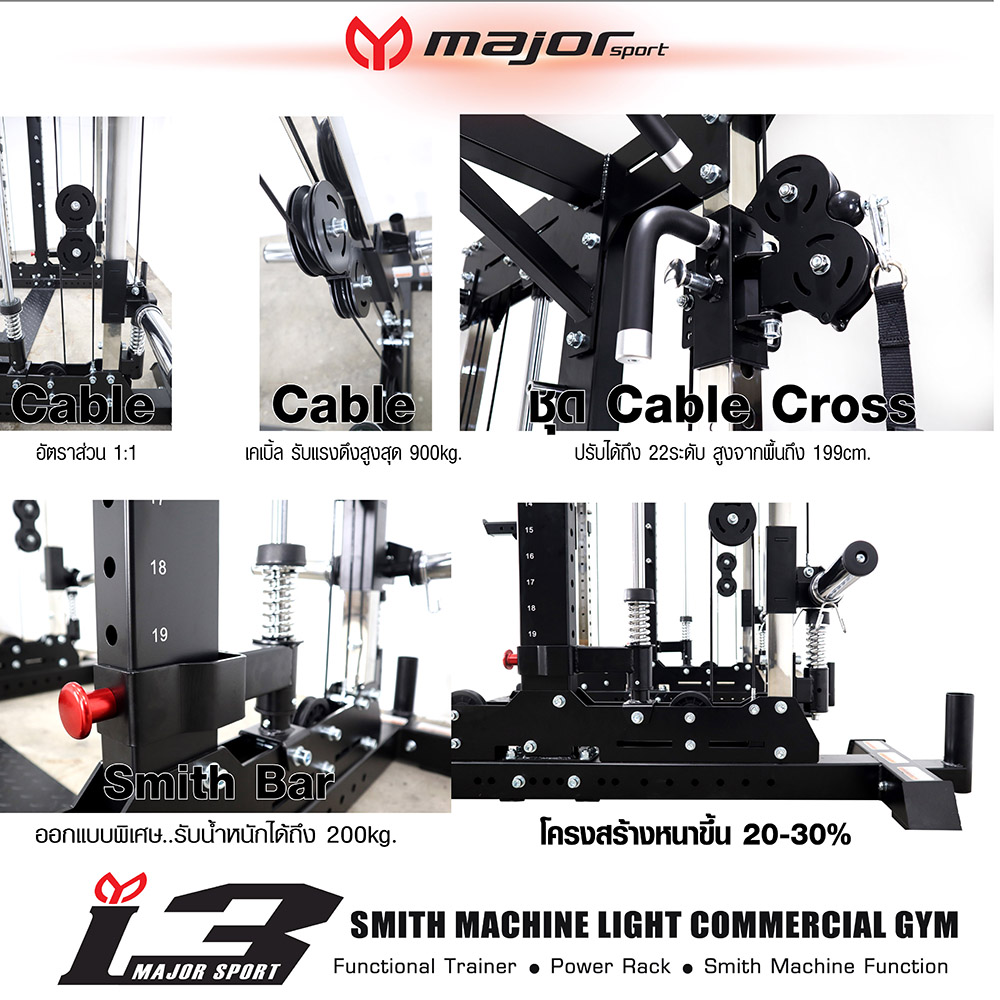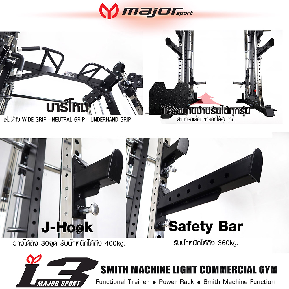 • แกนได้มาตรฐาน Smith machine รับน้ำหนักได้ถึง 200 กก